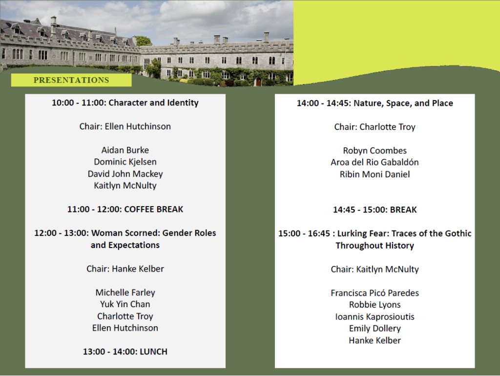 Turn down the lights and break out the candles, because at three we begin our final panel, Lurking Fear: Traces of the Gothic Throughout History. A palpable darkness will hang over the North Council Room as Francisca Picó Paredes, Robbie Lyons, Ioannis Kaprosioutis, Emily Dollery, and Hanke Kelber present a series of sinister speeches which illustrate that the Gothic is not just for churches anymore. Beginning with ghostly tales past and present, they’ll move onto the grotesqueries of Poe and the undercurrent of incisive depictions mental health that underpin the genre, before finally demonstrating through contemporary post-apocalyptic fiction that the days of Gothic crypts and unknown horrors